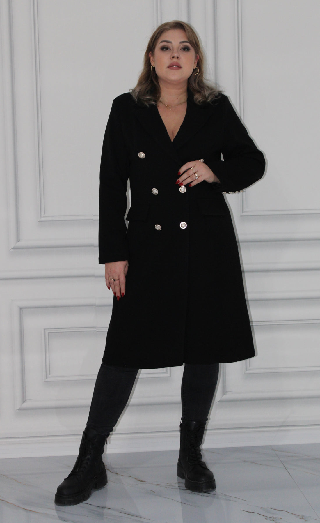 Marime universala - Bust maxim 110cm Talie maxima 100 cm Palton lung elegant cu nasturi...