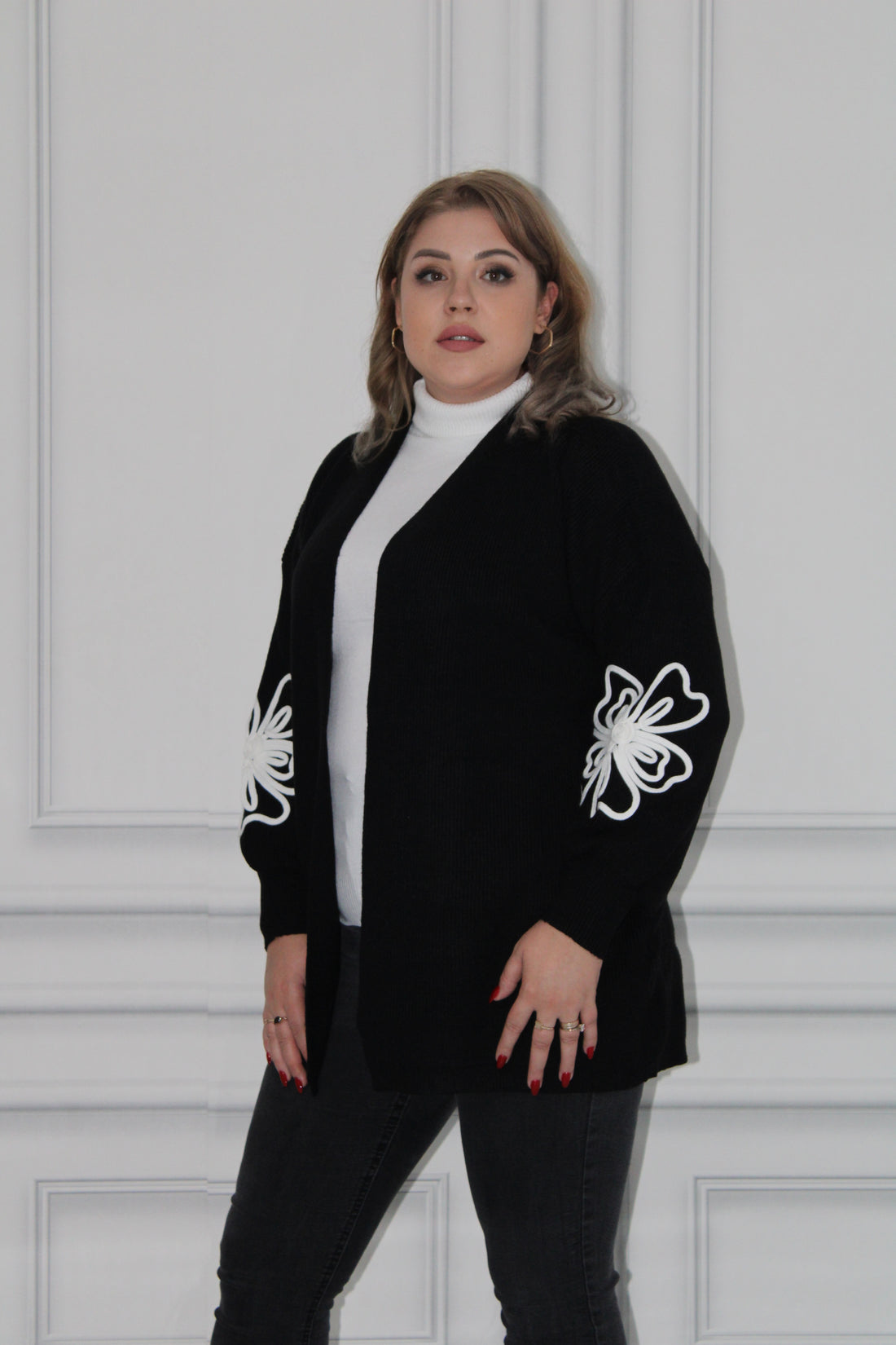 Cardigan tricotat cu aplicații florale pe mâneci Cardigan elegant și confortabil, ideal pentru sezonul rece...