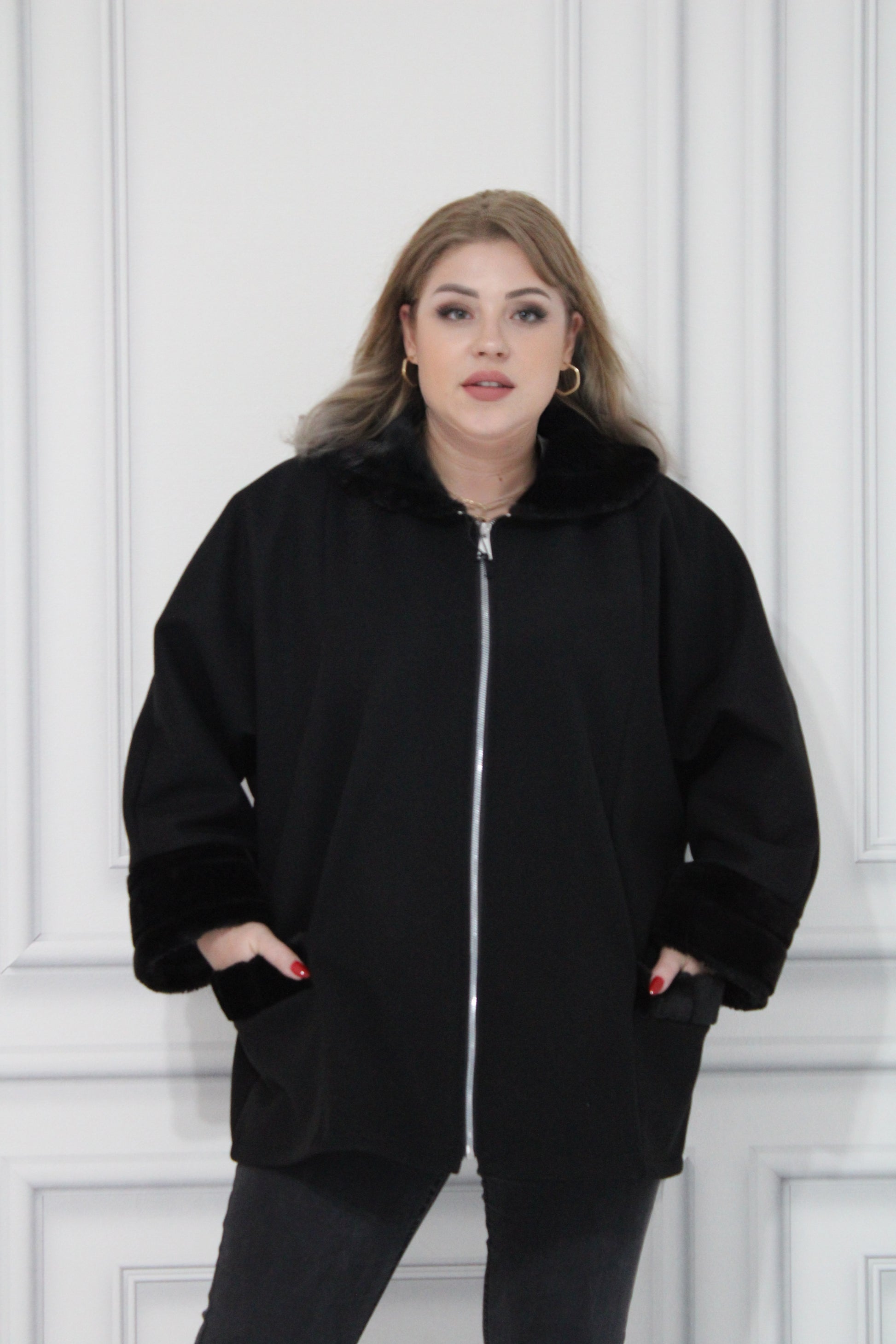 Jacheta scurta cu fermoar și blăniță la guler și manșete