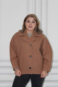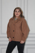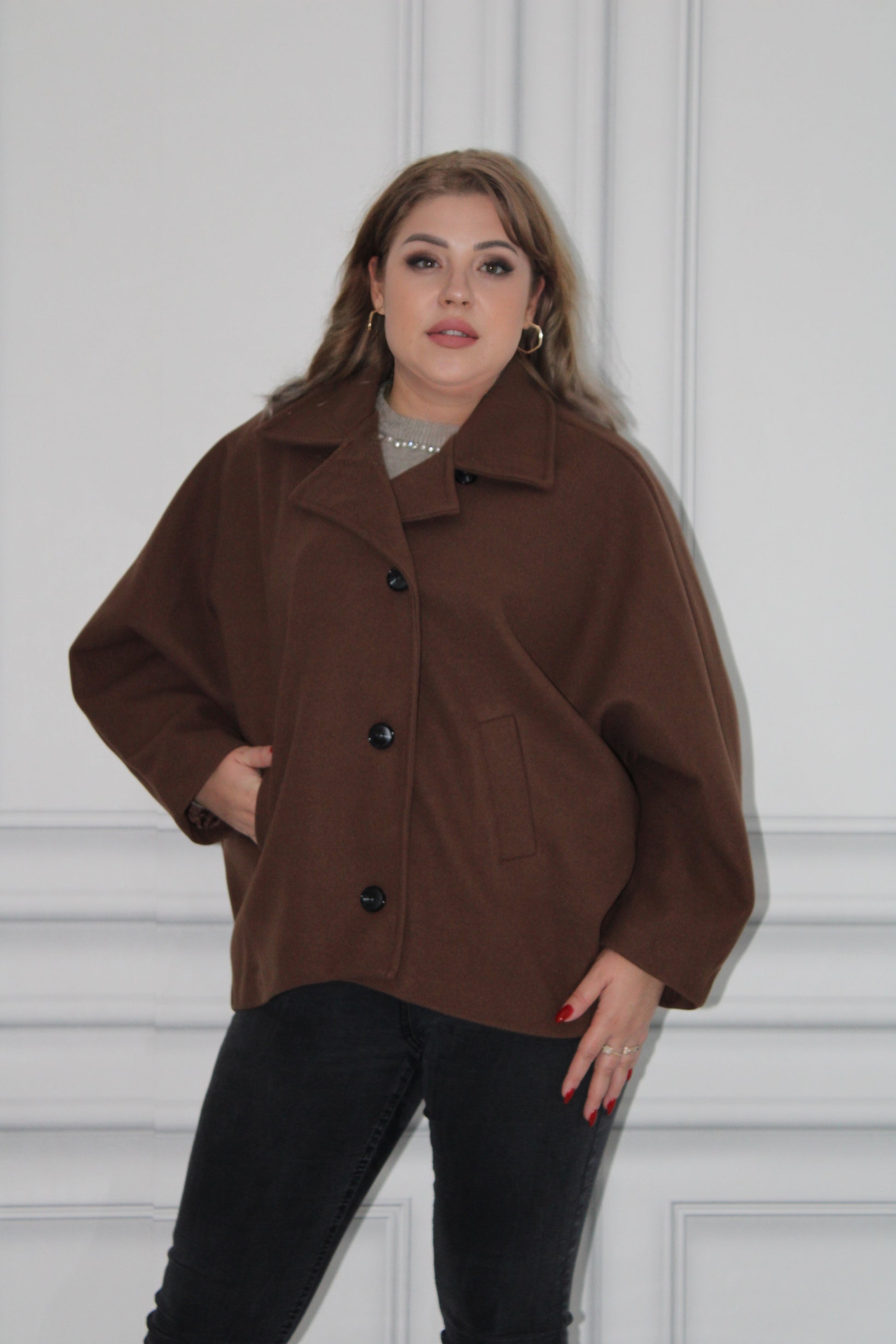 Adaugă un plus de stil și confort ținutelor tale de toamnă-iarnă cu aceasta jacheta scurta oversize. Croiala lejeră oferă libertate de mișcare și un aer modern, iar textura moale a materialului te protejează de frig. Modelul este prevăzut cu guler clasic, buzunare laterale practice și nasturi mari, contrastanți, care completează designul minimalist.
