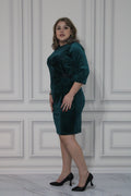 Rochie elegantă din catifea verde cu sclipici discret și croi cambrat