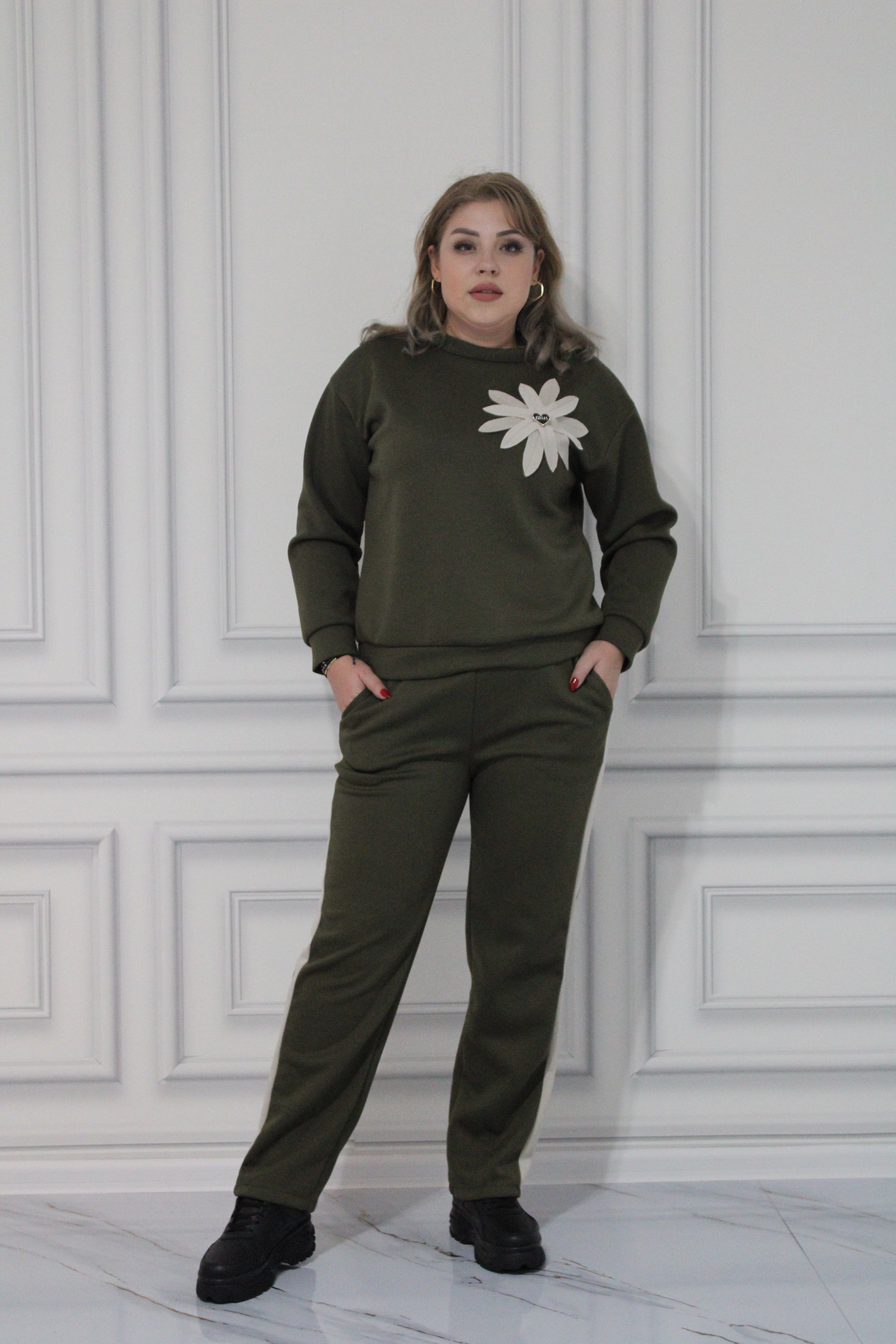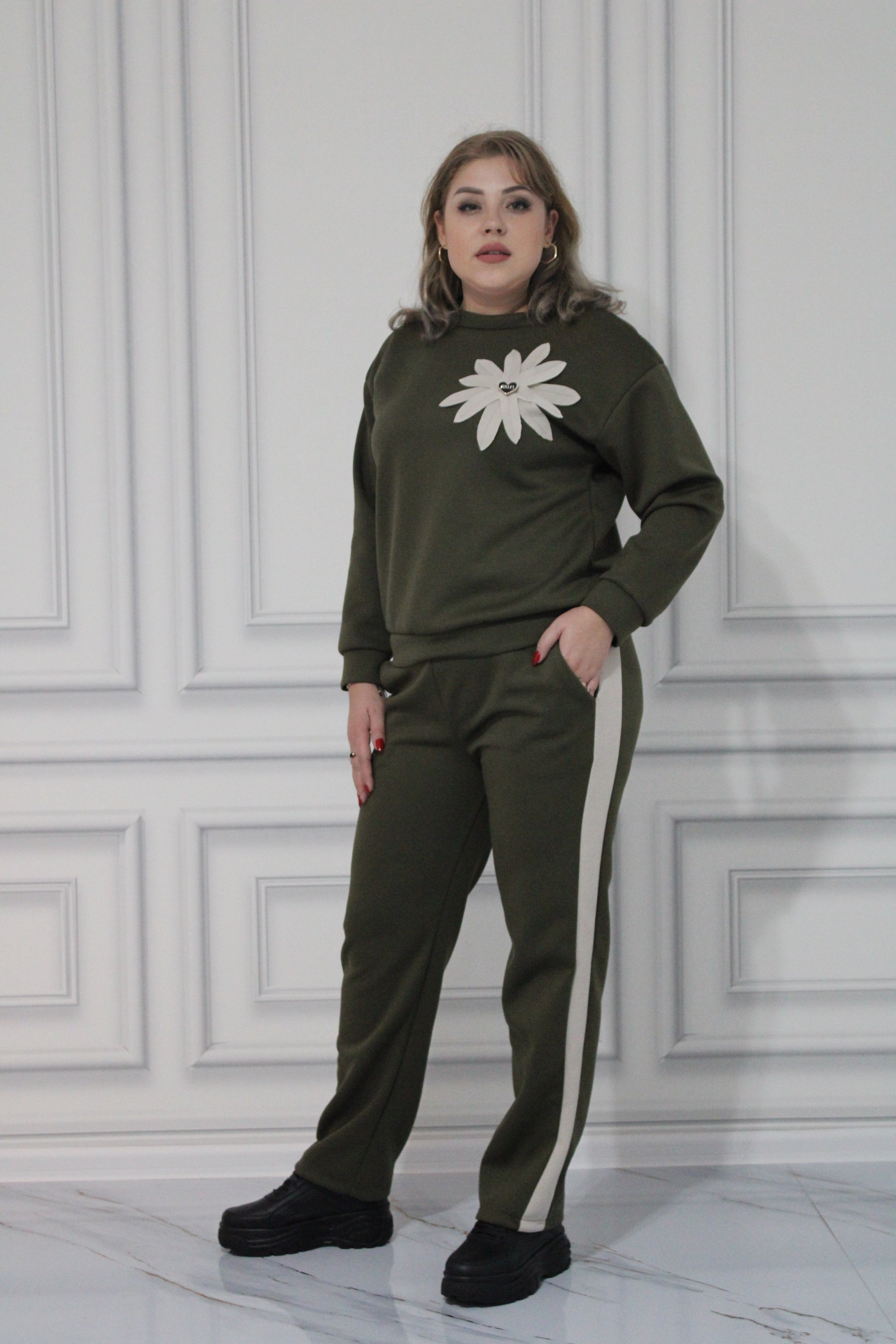 Trening Floare si Pantaloni cu Dunga